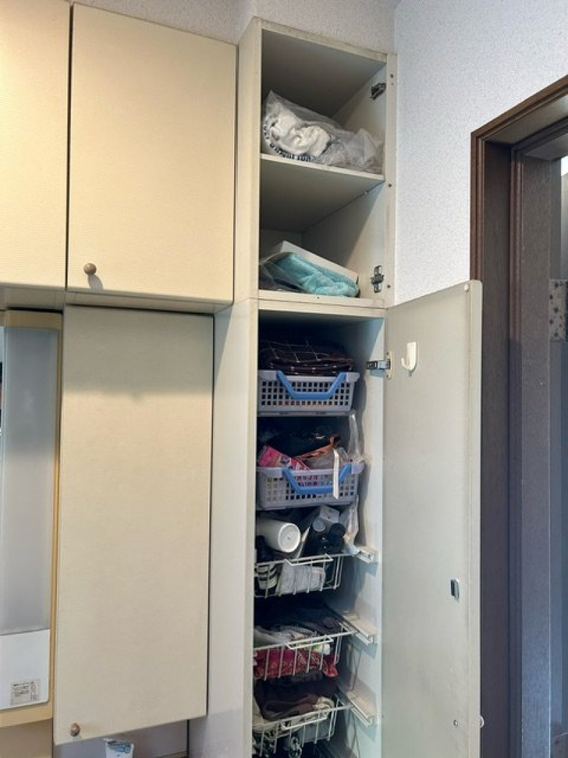 かなり大事に長年使い込まれてきた化粧台キャビネットですが扉の開閉が出来なくなり脱落の危険もある状態となりTOTOにメンテナンス依頼をされた様です。